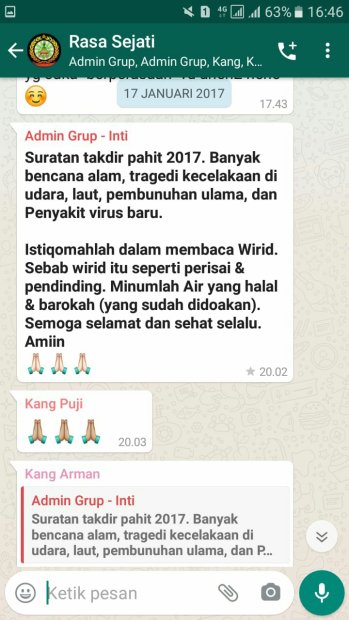 Ki Umar Jogja : Adanya virus ini sudah menjadi ketetapan takdir Allah. Saya mengatakan demikian bukan sekedar ucapan belaka atau sekedar mengamini kejadiannya yang sekarang sudah terjadi kemudian mengatakan “ini takdir”. Bukankah sejak 3 tahun yang lalu (2017) telah saya kabarkan tentang akan adanya Virus ini? Silahkan buka kembali WA-nya.