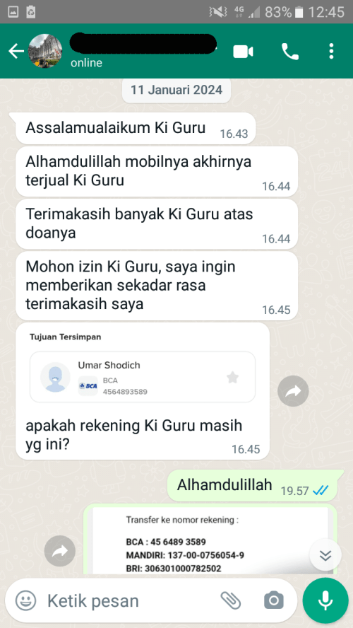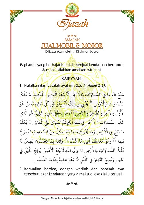 NB. Cepat atau lambat dipengaruhi juga dengan siklus rejeki yang bersangkutan. Dapat dideteksi dengan ilmu Metafisika 4 Pilar (materi Tingkat Guru). Tapi umumnya Fadhilah doa Asma/Hizib ibarat Buah untuk mempercepat proses pematangan agar segera panen.