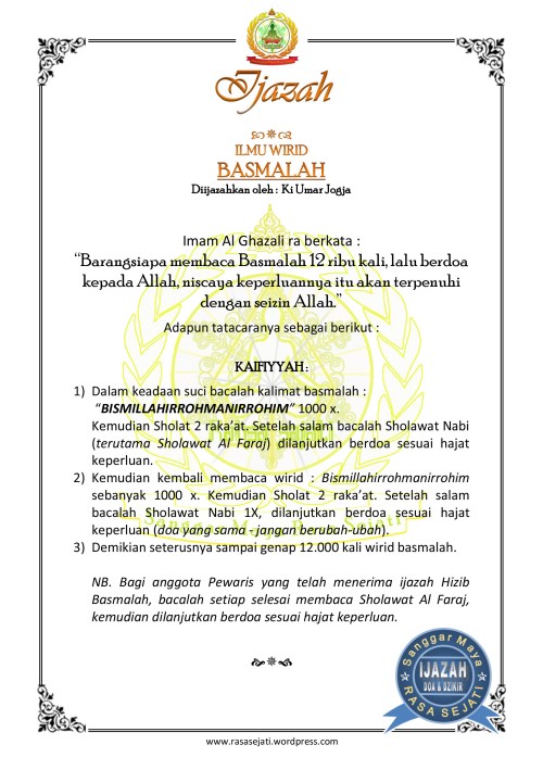 HIZIB BASMALAH » IJAZAH ILMU WIRID – BASMALAH