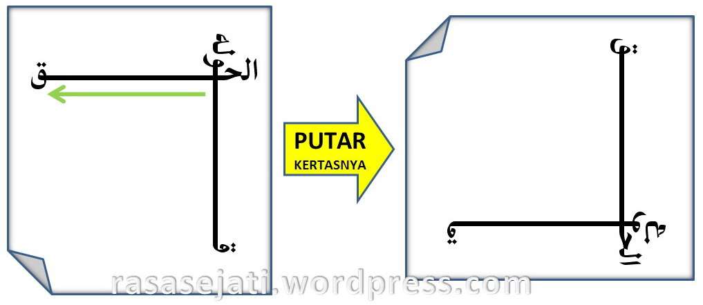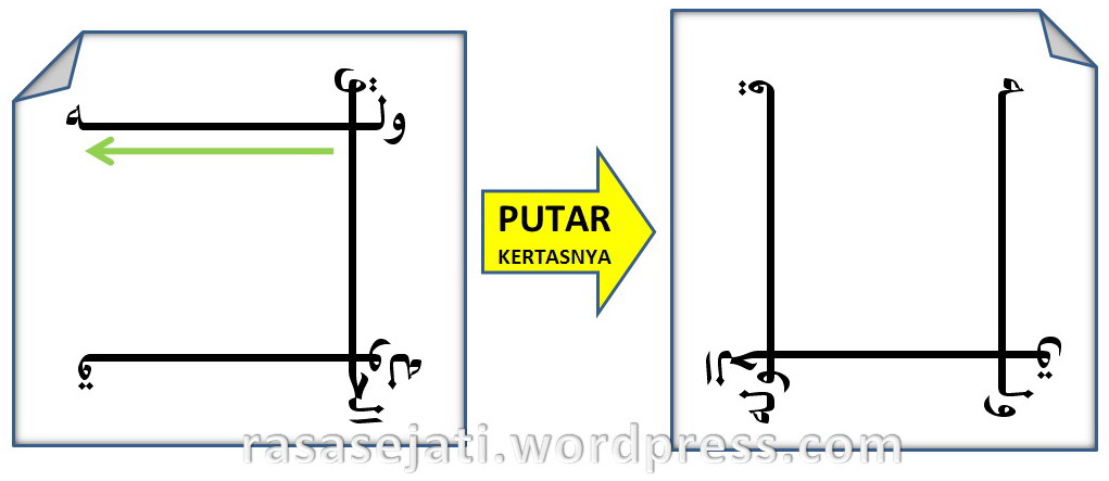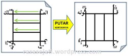 1. Langkah pertama adalah membuat garis persegi terluar dahulu. Boleh menggunakan penggaris (mistar). Dalam hal ini cara menulisnya secara urut, sesuai bacaan kalimatnya dan kaidah menulis huruf arab dari KANAN ke KIRI. Perhatikan kalimatnya ini :