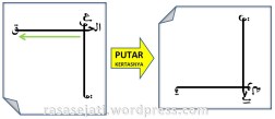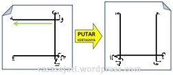 2. Untuk membuat garis sisi berikutnya maka kertas di PUTAR searah jarum jam. Jadi posisi anda tetap menghadap ke satu arah. Perhatikan langkah berikut ini :