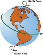 Jadi Bumi membutuhkan waktu 24 jam untuk sekali berputar pada porosnya. Akibat rotasi ini terjadilah fenomena siang dan malam. Dimana bagian sisi bumi yang menghadap Matahari mengalami masa Siang (terang), sedangkan bagian sisi bumi yang membelakangi Matahari mengalami masa Malam (gelap).