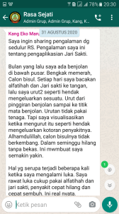 Hal yang serupa terjadi beberapa kali ketika saya mengalami luka. Saya rawat luka cukup pakai alfatihah dan Jari Sakti, penyakit cepat hilang dan cepat sembuh. Ini real nyata.